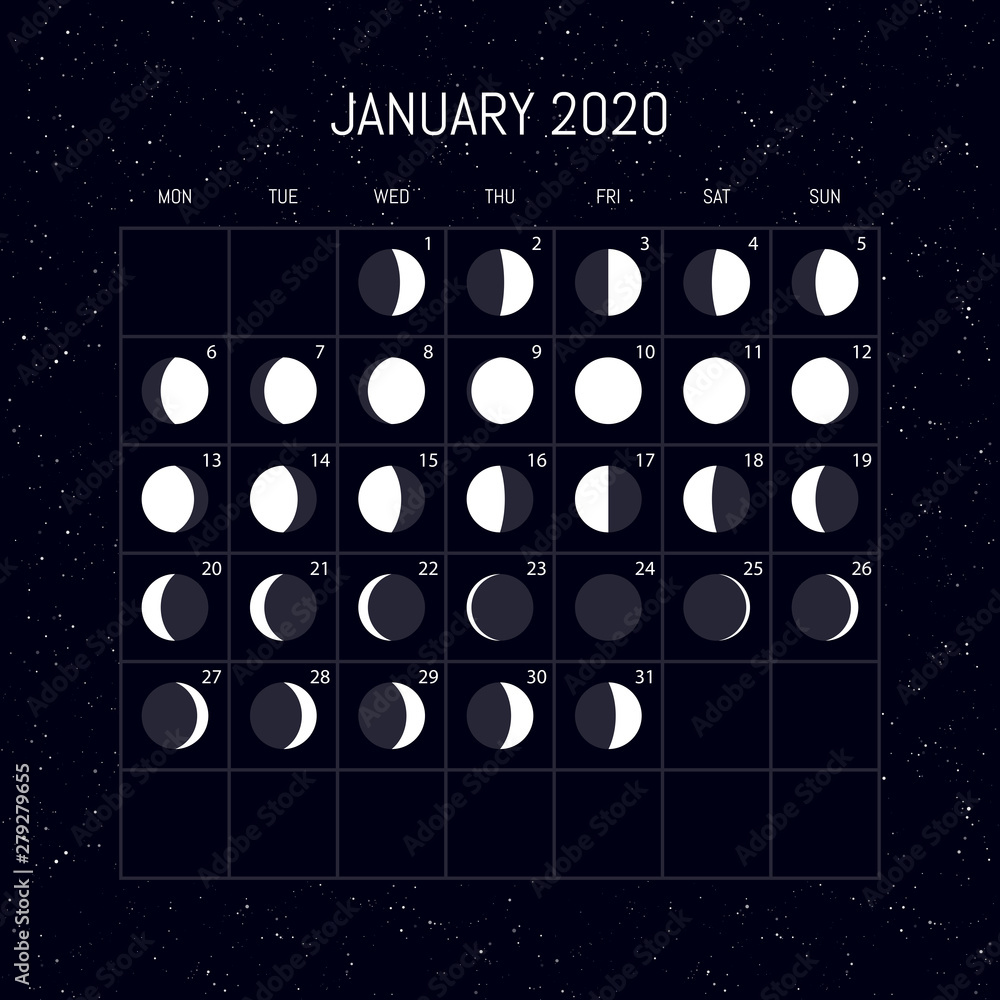 January 2024 Lunar calendar, Moon cycles Stock Photo | Adobe Stock